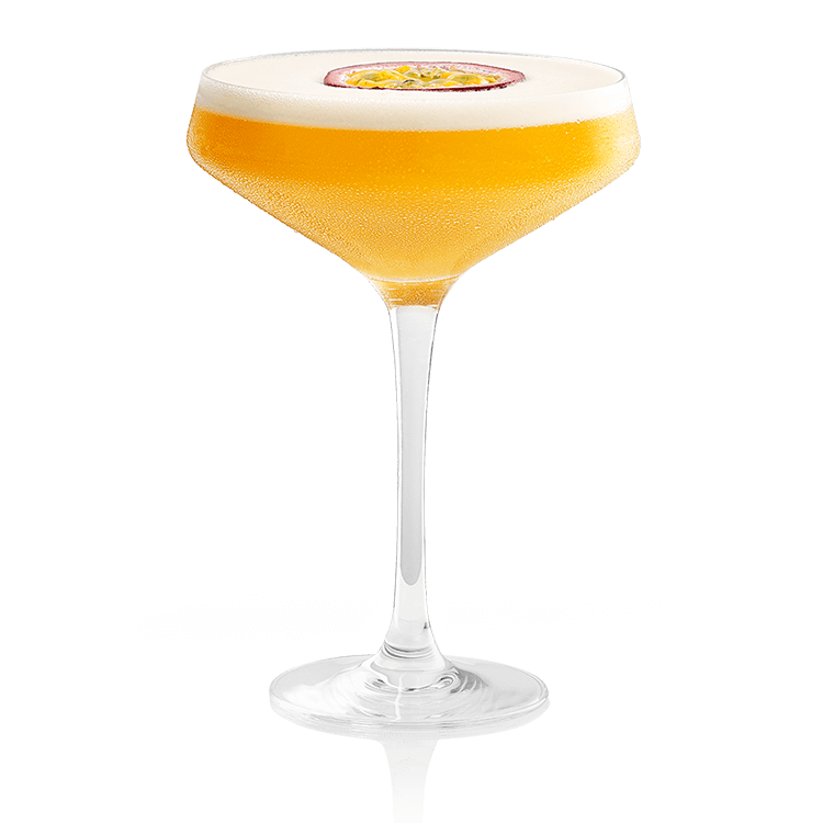 - Step 2 Shake for a minute or two. Strain into a chilled Martini glass. Serve with a passion fruit half to float on top.